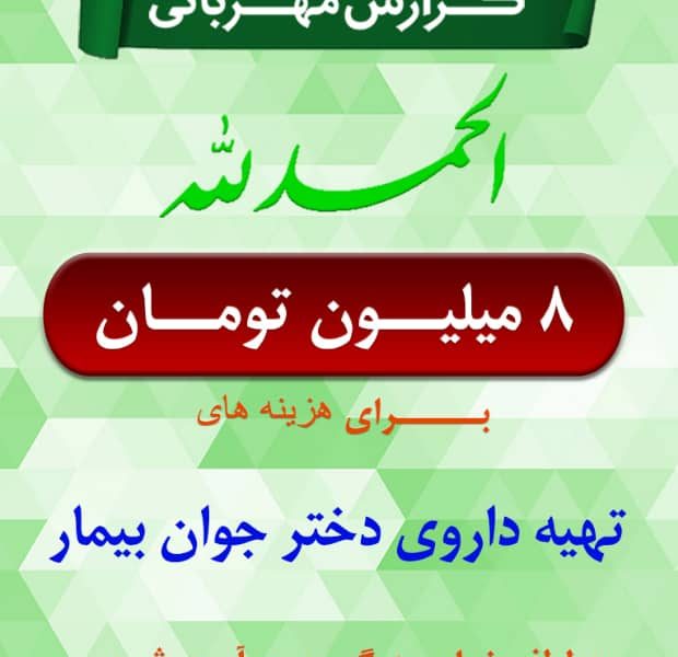 السلام علیک یا صاحب الزمان سلام؛ روزگارتون دور از بلا و بیماری ?با لطف خدای بزرگ و همت کاربران و مخاطبان عزیز کمک هزینه درمان به دختر جوان بیماری که گزارش ایشان منتشر شده بود به مبلغ دوازده میلیون و ۹۰۰هزار تومان پرداخت شد. الحمدلله رب العالمین برای شفای همه بیماران صلوات
